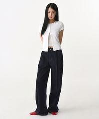 우먼즈 린넨 라이크 원 턱 엑스트라 와이드 데님 팬츠 [딥 인디고]