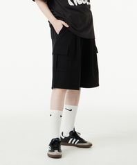 버뮤다 와이드 카고 스웨트 숏 팬츠_블랙
