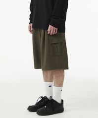 버뮤다 와이드 카고 스웨트 숏 팬츠_카키