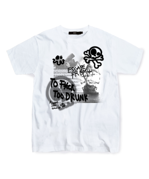블랙 파이럿 쉽 프린트 티셔츠 화이트