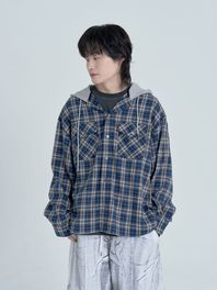 엠버 체크 후드셔츠 (Navy)