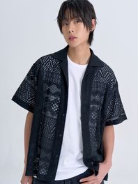 에스닉 레이스 하프 셔츠 (Black)