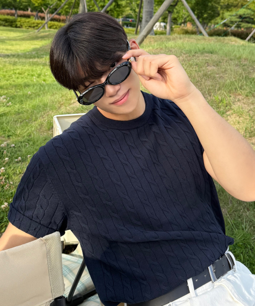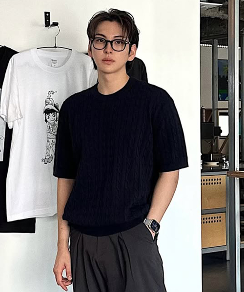 워셔블 수피마 코튼 크루 넥 반소매 니트 [블랙]