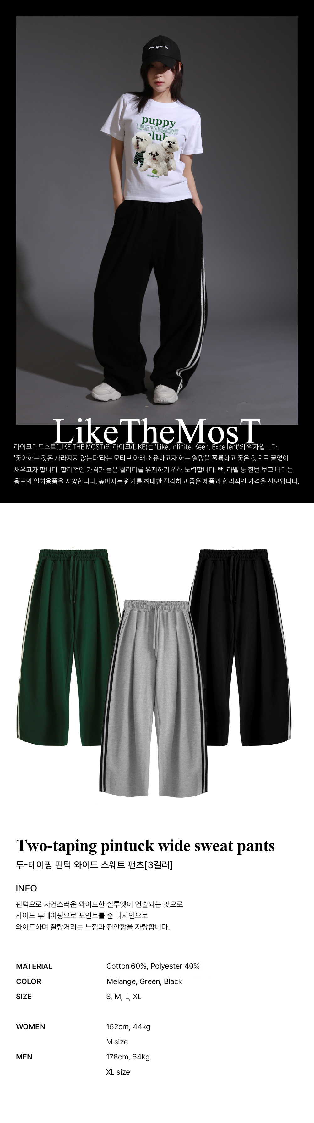 투테이핑 핀턱 와이드 트레이닝 팬츠 [블랙]