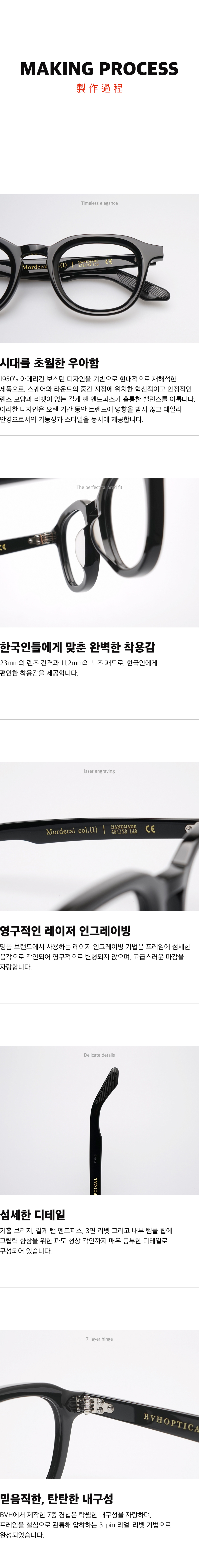 BVH EYEWEAR(비브이에이치)는 여러분야의 아티스트들과의 콜라보레이션으로 새로운 문화를 만들고 크리에이티브한 상품들을 제안하고 예술적인 고유의 디자인 프로세스를 거쳐 기획, 제작됩니다.