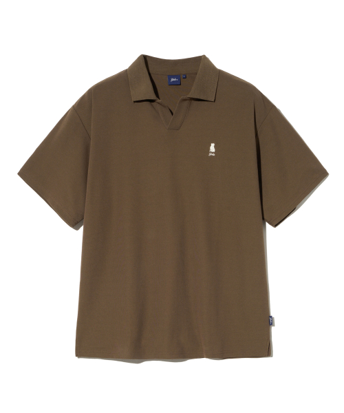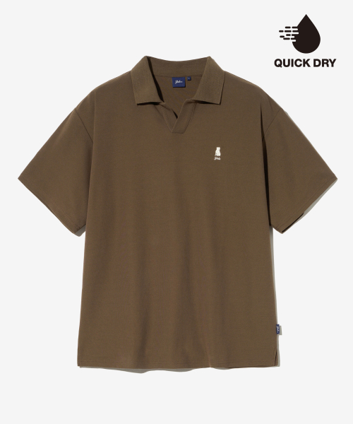 퀵 드라이 피케 슬릿넥 폴로 셔츠 브라운