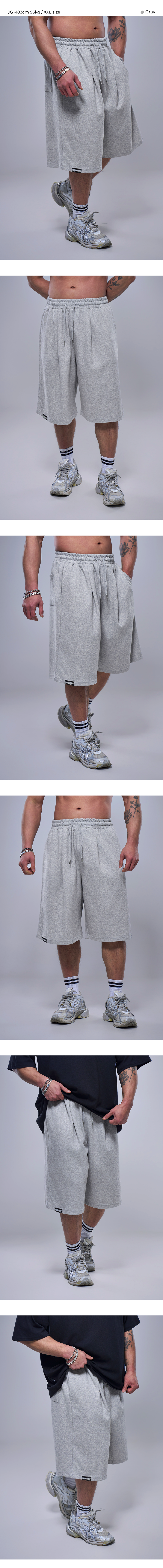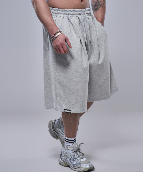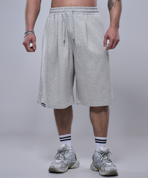 맥시 와이드 스웨트 버뮤다 쇼츠_멜란지 화이트