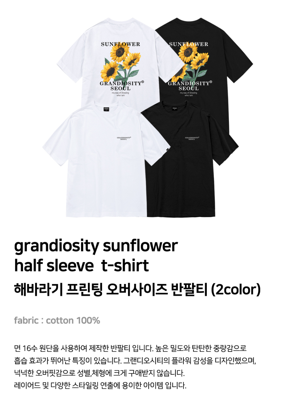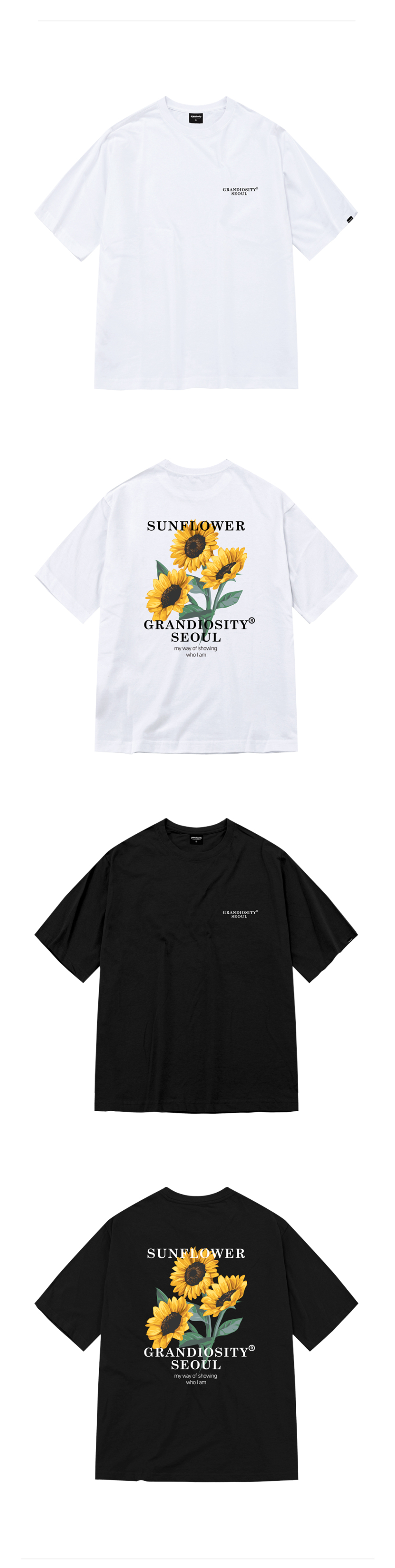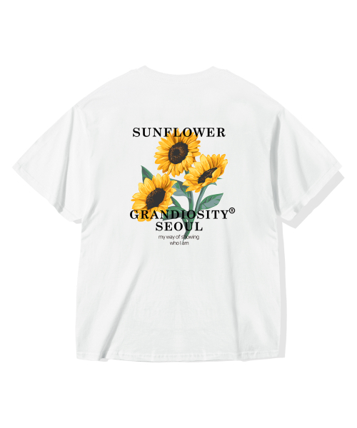 해바라기 프린팅 오버핏 반팔 티셔츠 (화이트)