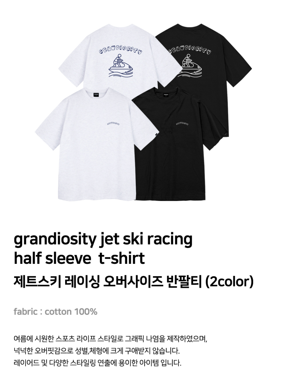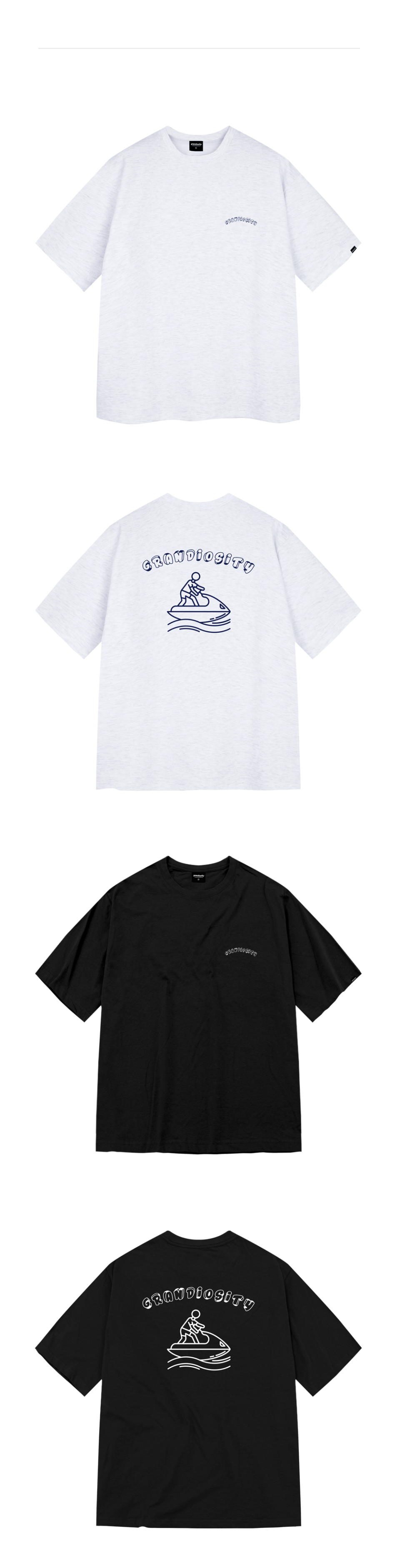 제트스키 레이싱 그래픽 오버핏 반팔 티셔츠 (블랙)