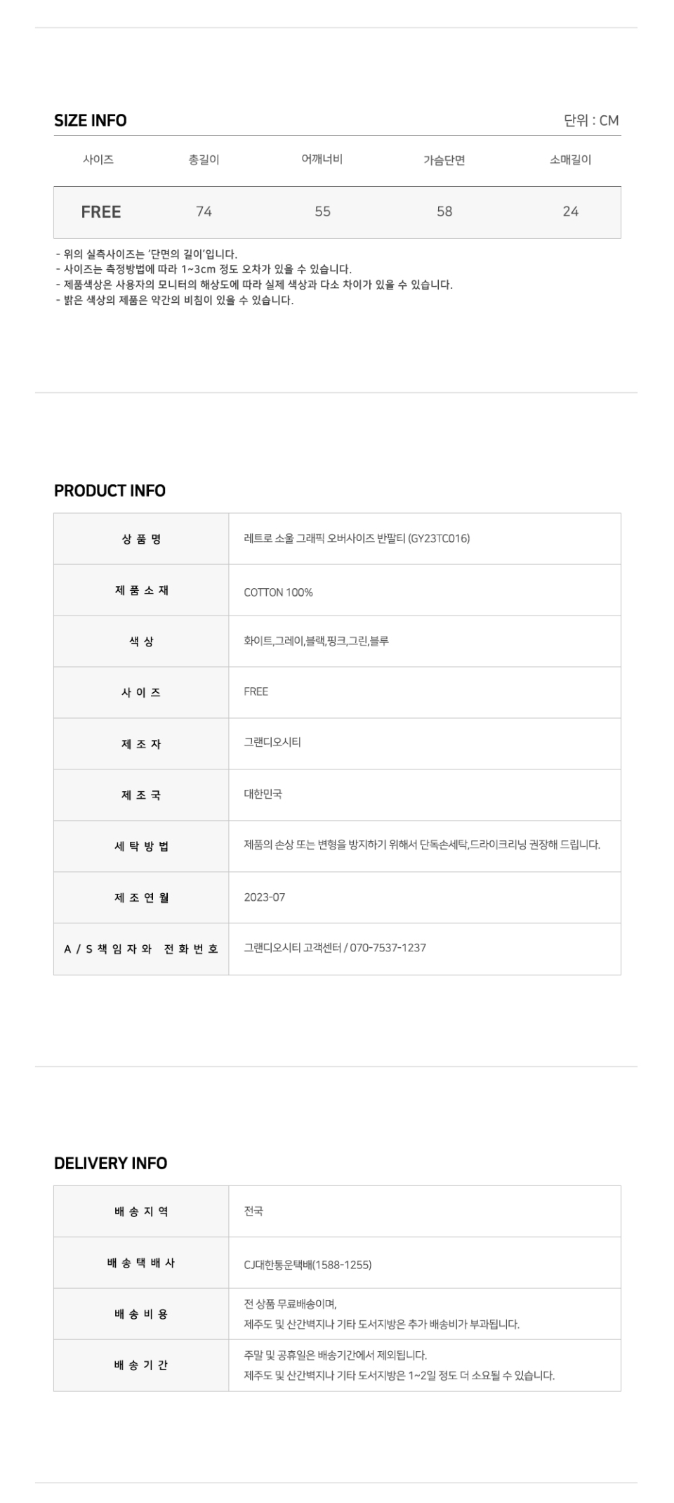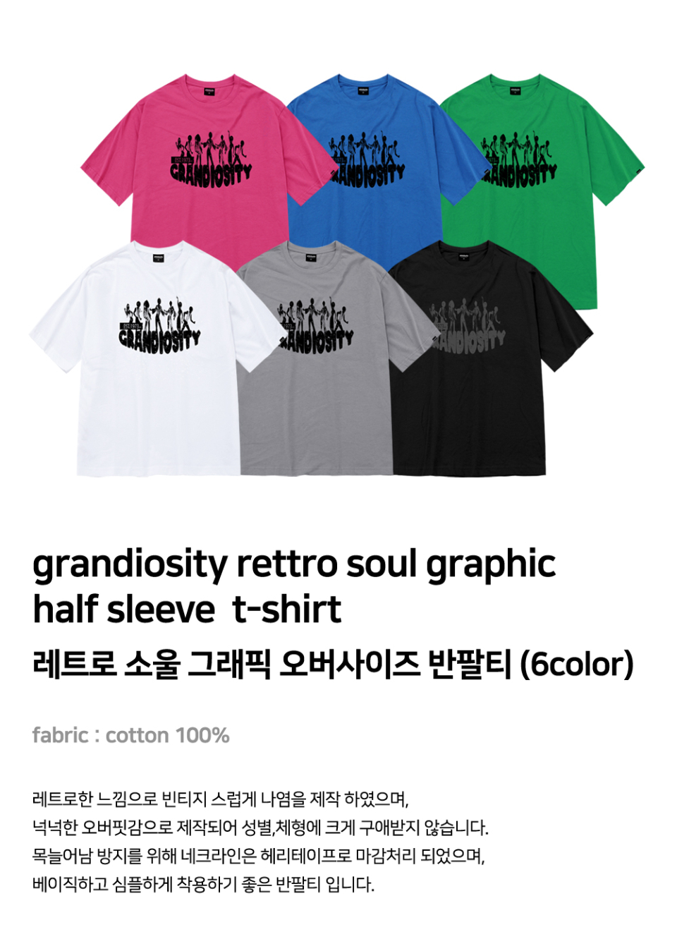 레트로 소울 그래픽 오버핏 반팔 티셔츠 (블루)