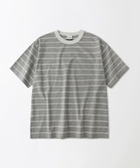 STRIPE HALF SLEEVE TEE_GRAY/IVORY