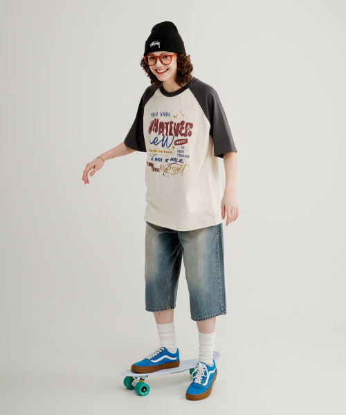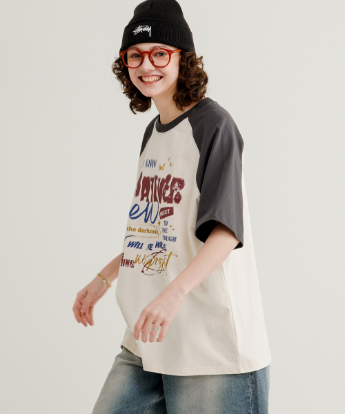 썸띵 레글런 반팔티셔츠 크림그레이 MJST7708