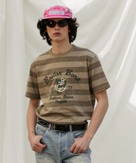 멜란지 스트라이프 자수 아트워크 반팔티 라이트브라운_FR2KT78U