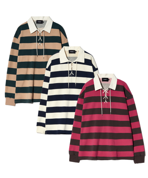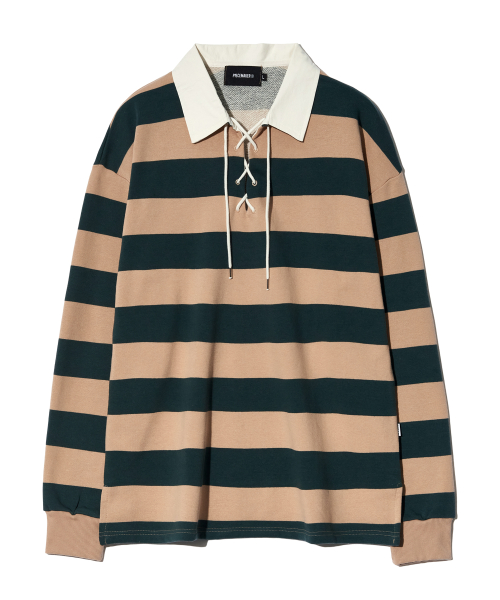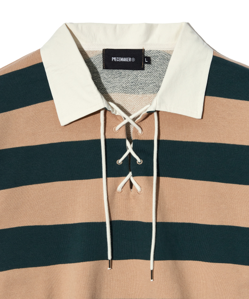 LACE UP STRIPE RUGBY TEE (BEIGE)