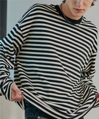 롱슬리브 헤비 오버핏 스트라이프 단가라 블랙