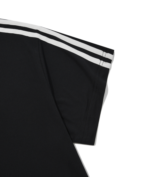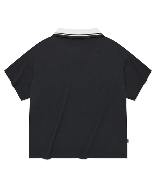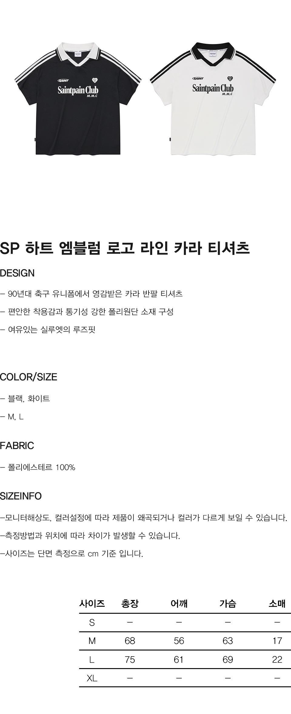 SP 하트 엠블럼 로고 라인 카라 티셔츠-블랙