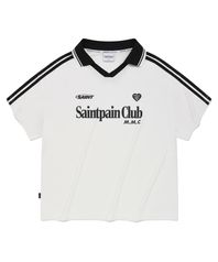 SP 하트 엠블럼 로고 라인 카라 티셔츠-화이트