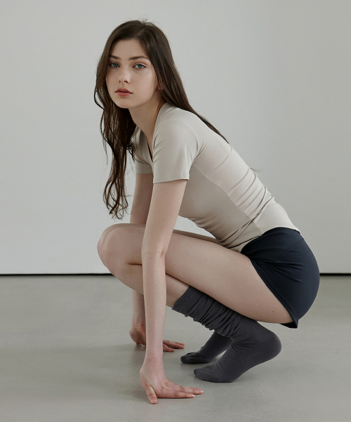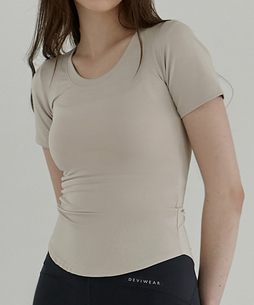 여성 요가복 DEVI-T0019-베이지 필라테스 뉴웨이브 물결 티셔츠