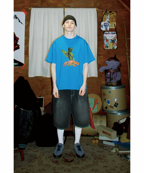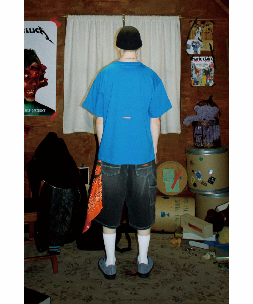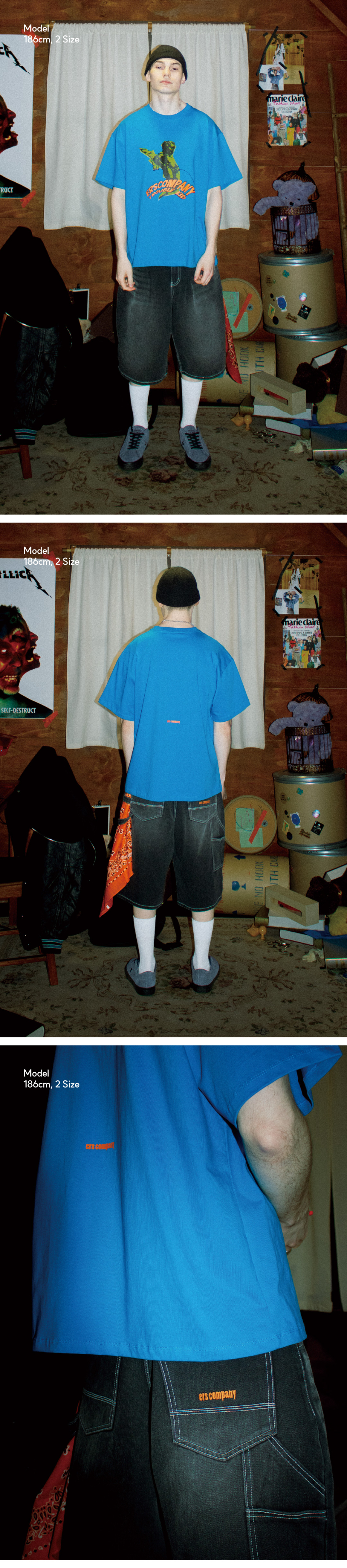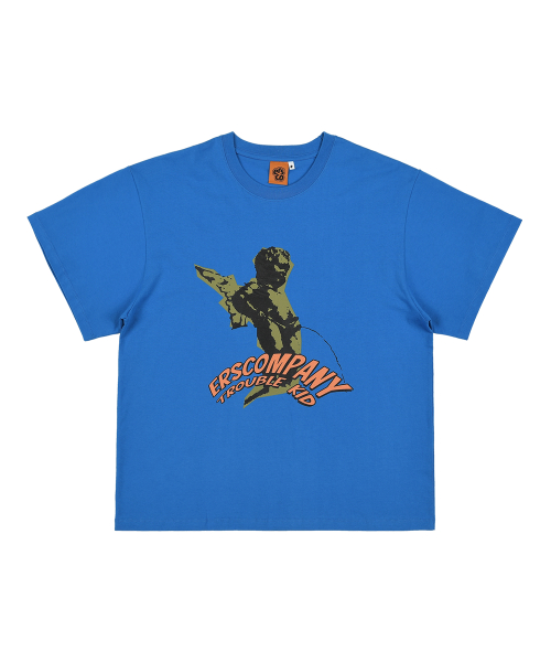 트러블 피잉 키즈 프린팅 티셔츠_블루