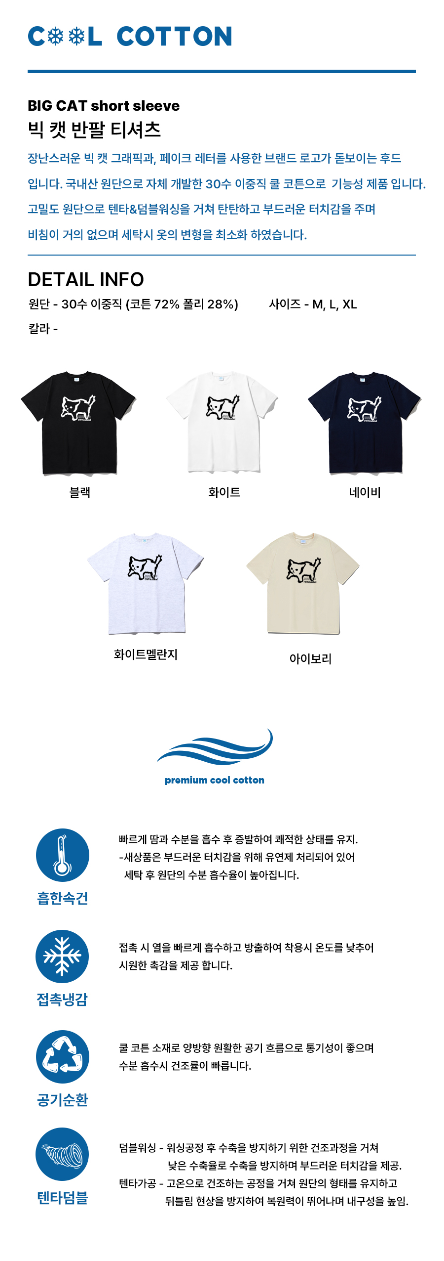 BIG CAT 쿨 코튼 오버핏 반팔(SISSTD-0050)