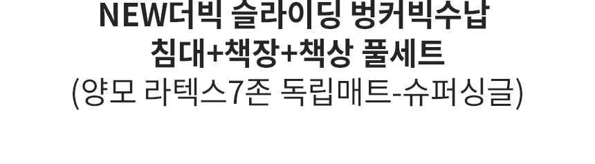 NEW더빅 슬라이딩 벙커빅수납 침대+책장+책상 세트(양모 라텍스7존 독립매트-슈퍼싱글)