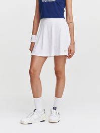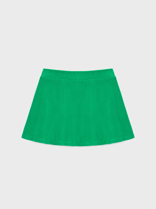 - - 자카드 테리와 컬러풀한 솔리드 테리 두가지 방식으로 편직되어 다양한 연출이 가능한 스커트