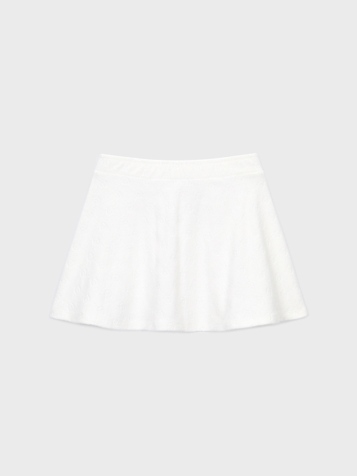 • - 자카드 테리와 컬러풀한 솔리드 테리 두가지 방식으로 편직되어 다양한 연출이 가능한 스커트