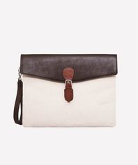 캔버스 레더 콤비 남성 가죽 클러치 (아이보리+다크브라운)B42939