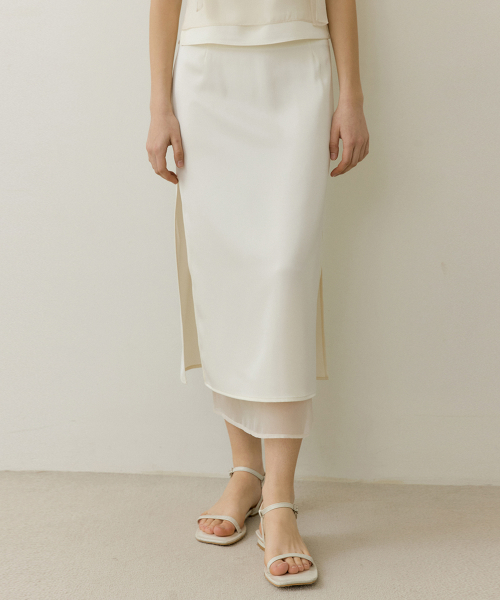 PETAL LAYERED LONG SKIRT CREAM SILK