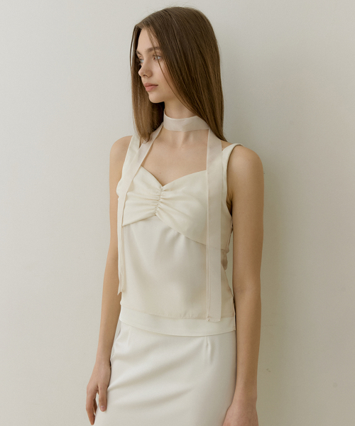 PETAL LAYERED TIE SLEEVELESS CREAM SILK