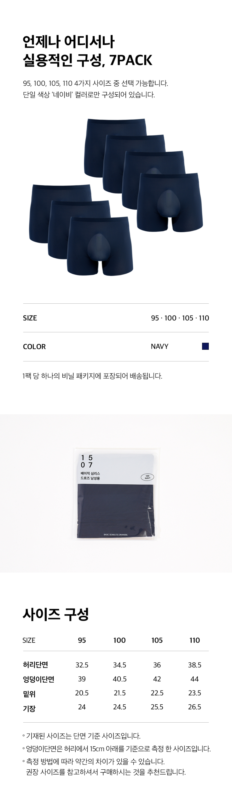 [7PACK] 1507 베이직 심리스 드로즈 - 위클리 팩(네이비)