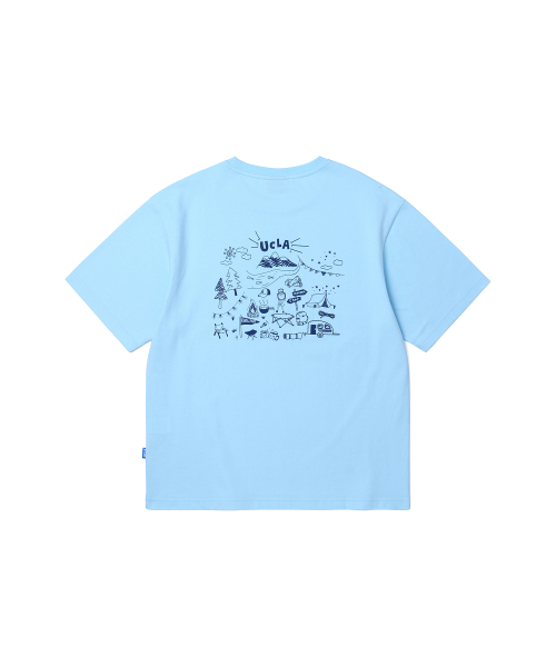 남녀공용 캠핑 드로잉 반소매 티셔츠[BLUE](UA5ST1A_43)
