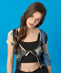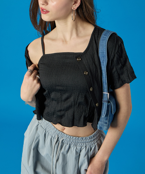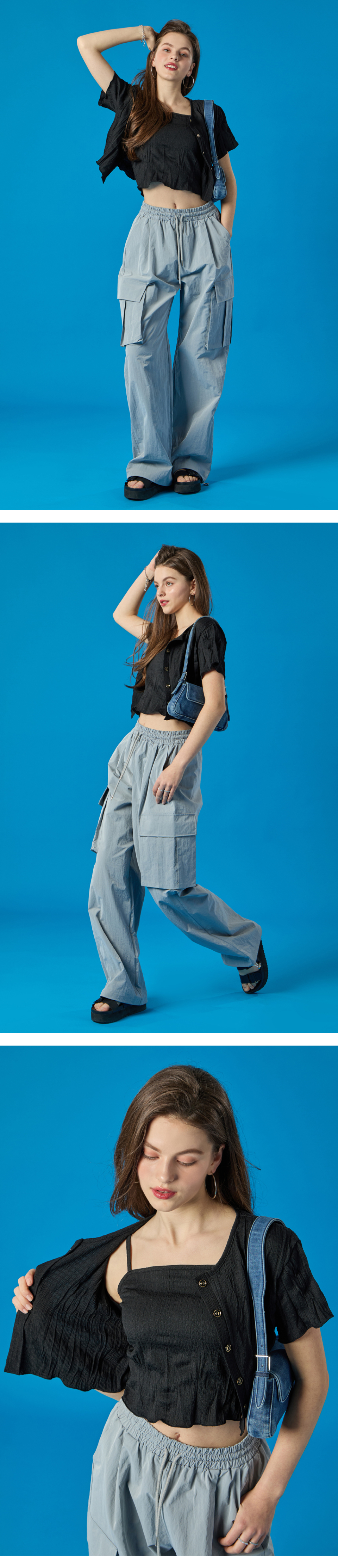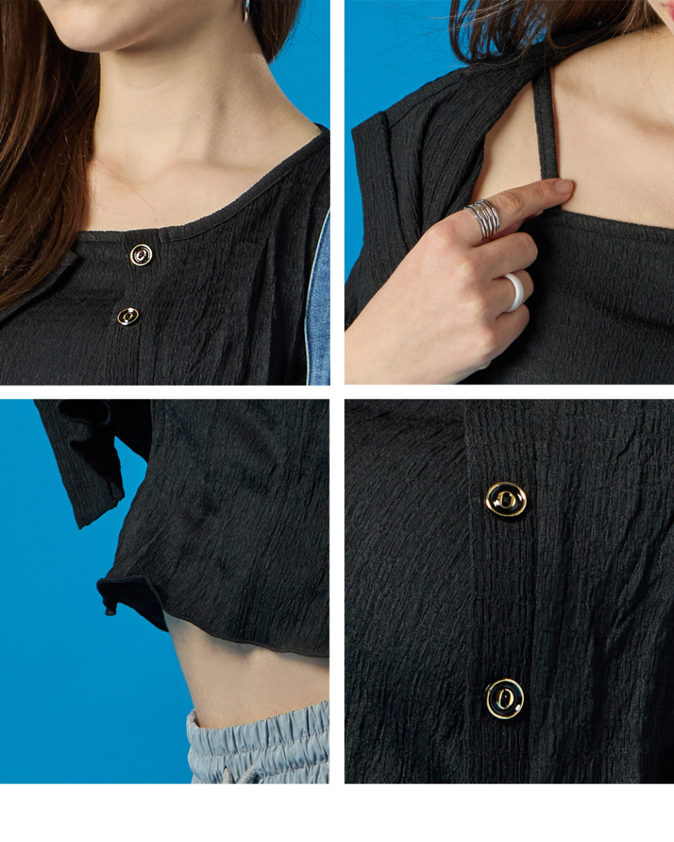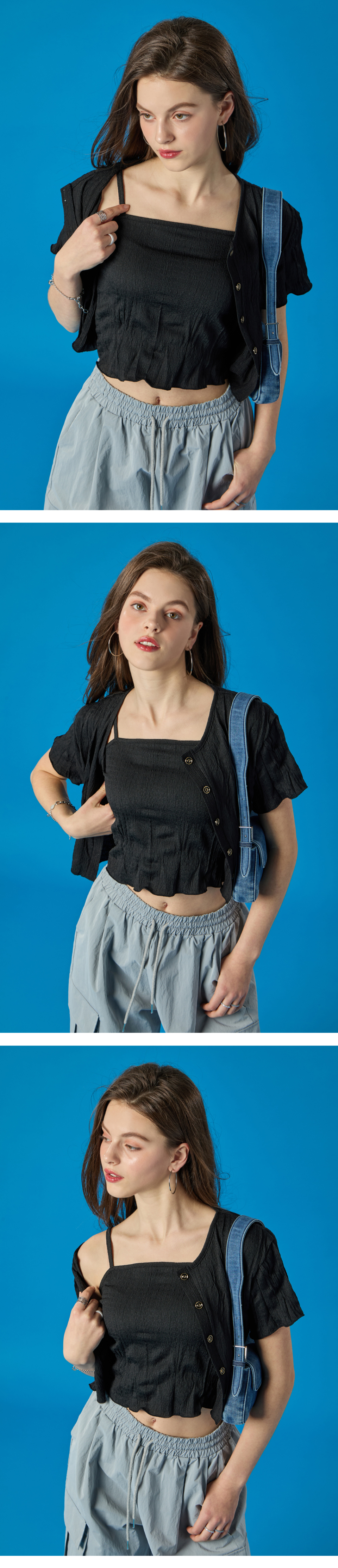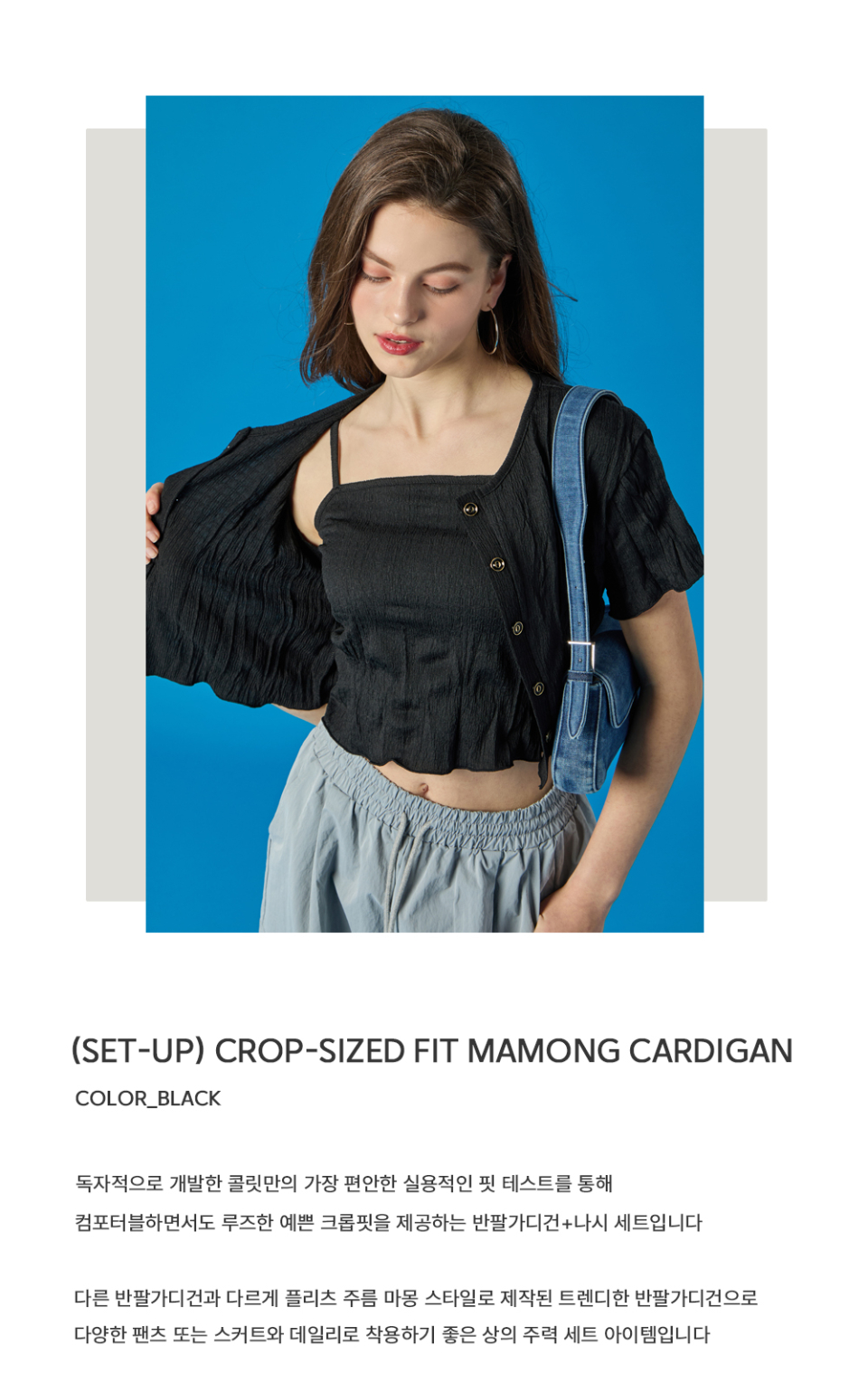 셋업 여름 쿨링 마몽 크롭 가디건 반팔티 끈나시 세트 [블랙]