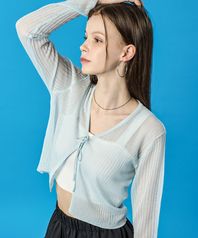 시스루 쿨링 여름 리본 끈 스트랩 가디건 [스카이블루] KGL.