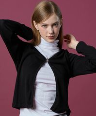 WOMEN 시크 니트 투버튼 레이어드 가디건 [BLACK]
