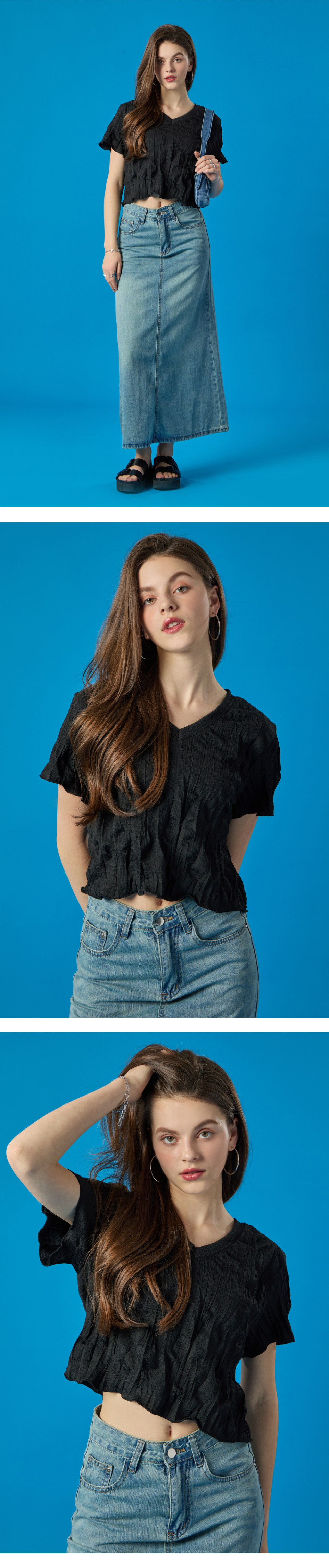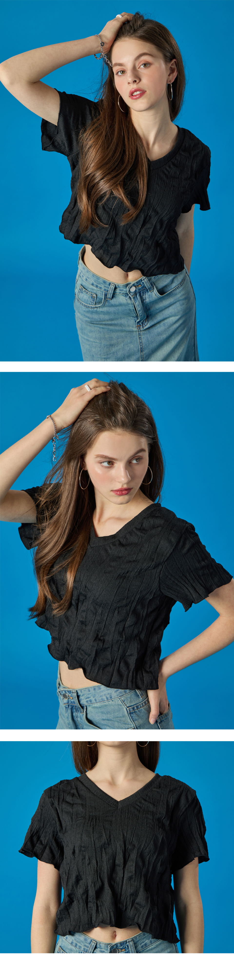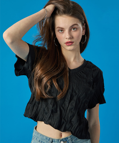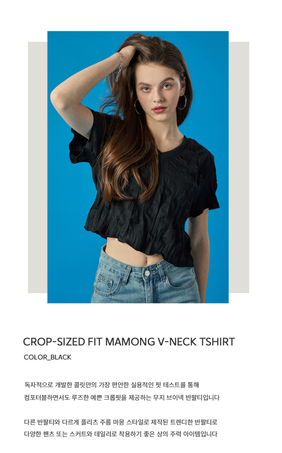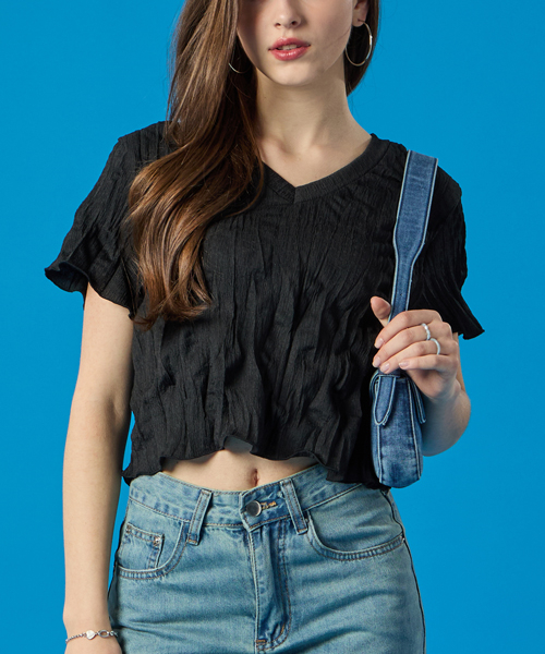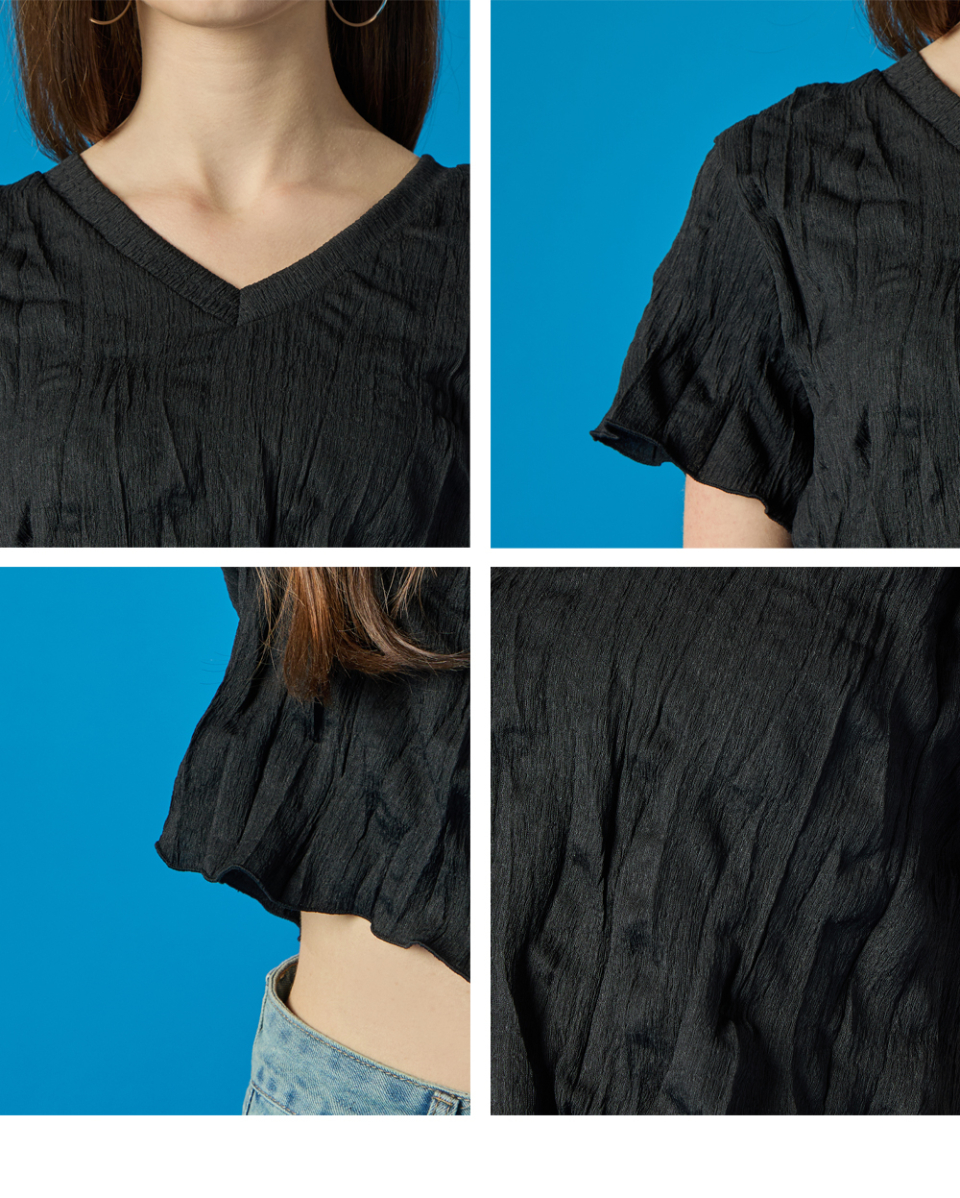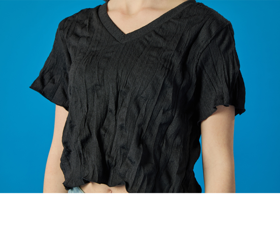 여름 쿨링 마몽 브이넥 크롭 무지 반팔티 [블랙]