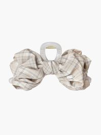 체크 시폰 리본 집게핀 (라이트베이지)
