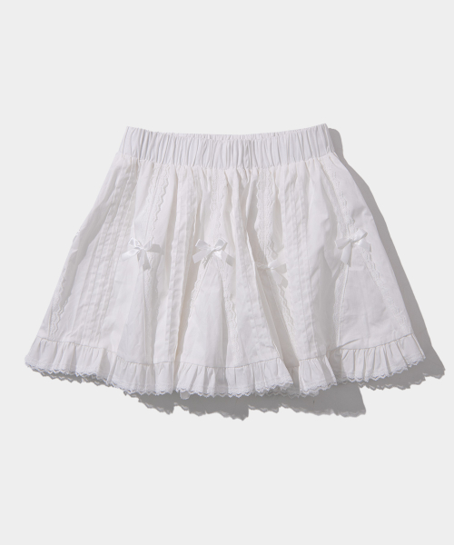 SMOCKED LACE CANCAN RUFFLE PANTSKIRT WHITE