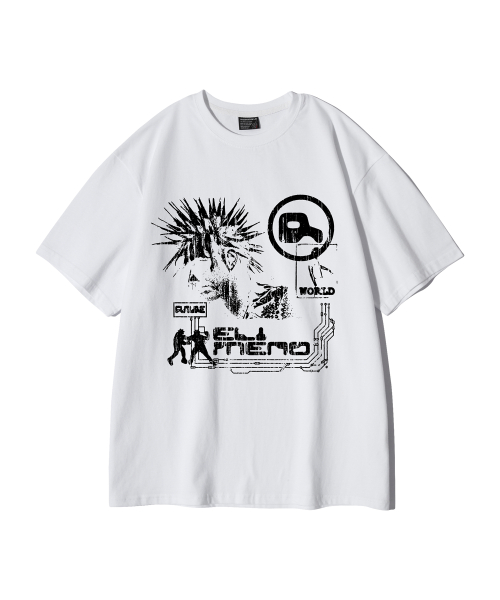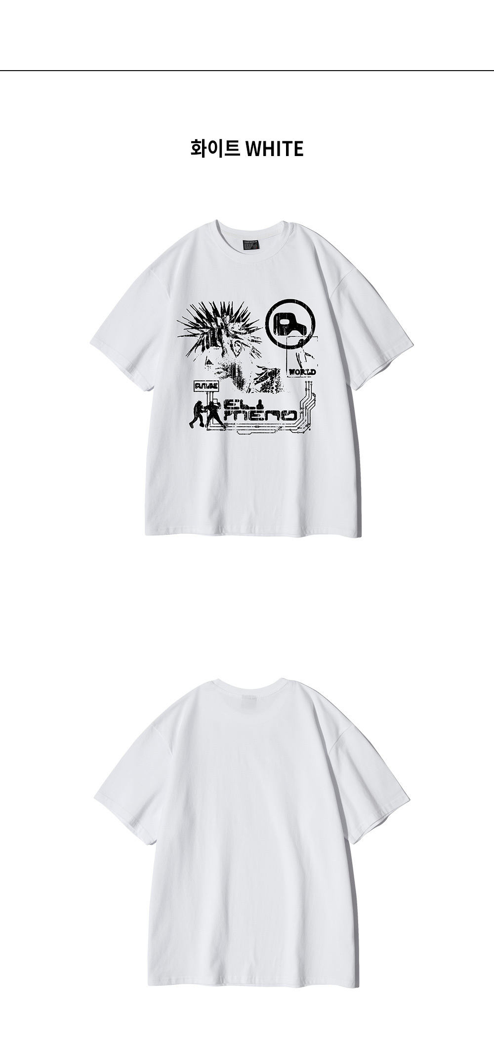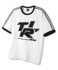 트랙 라인 그래픽 링거 하프 티셔츠_화이트