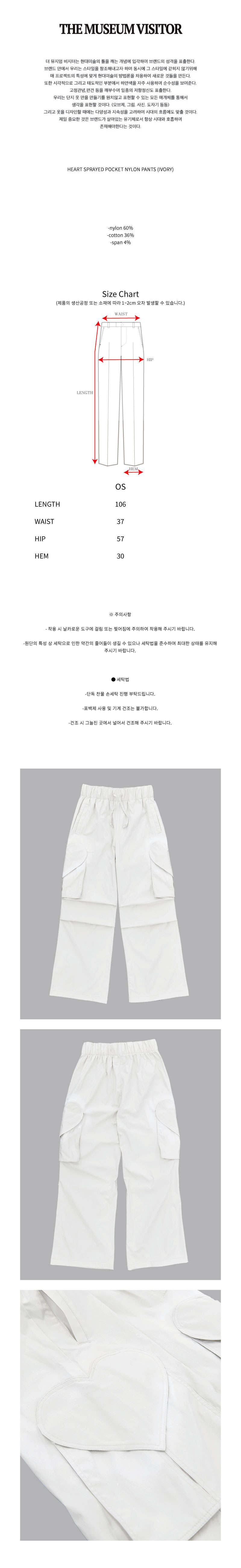 HEART SPRAYED POCKET NYLON PANTS (IVORY)