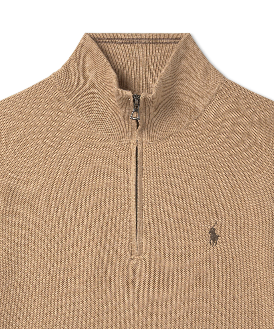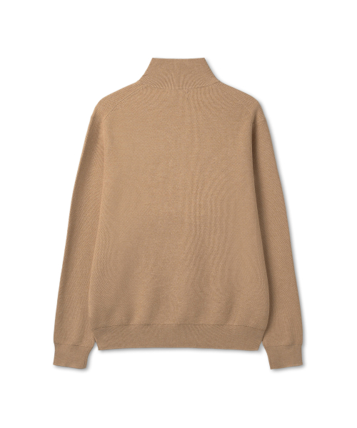코튼 쿼터 지퍼 스웨터 - 브라운