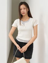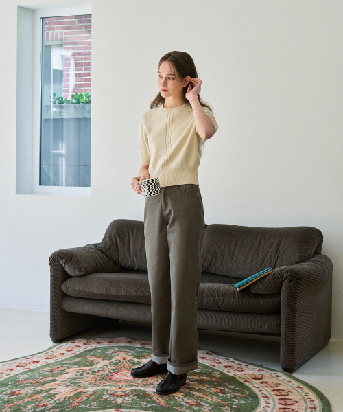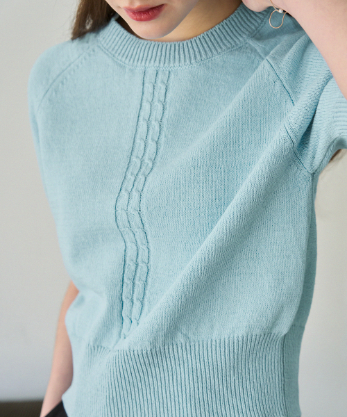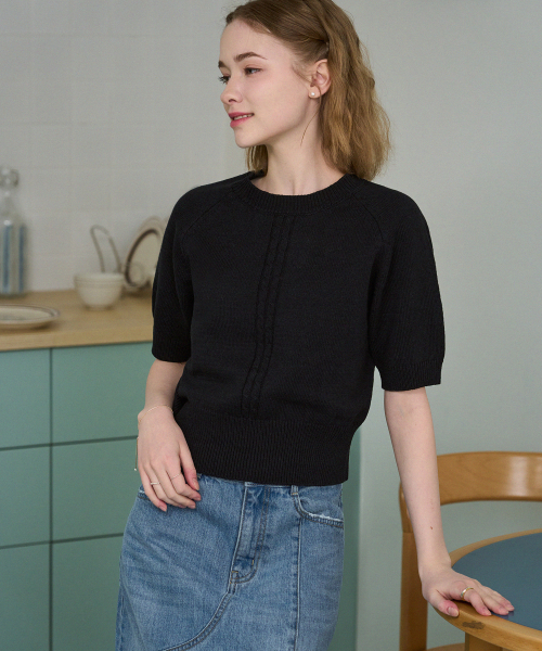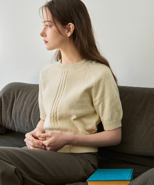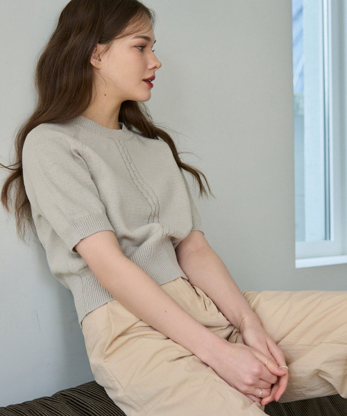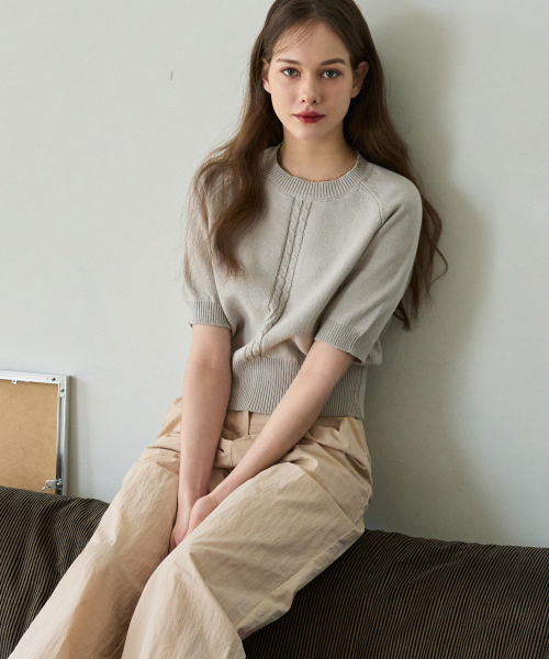 케이블 라인 린넨 반팔 니트 [L.GREY]