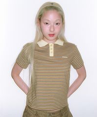 BASIC STRIPE COLLAR TEE BROWN