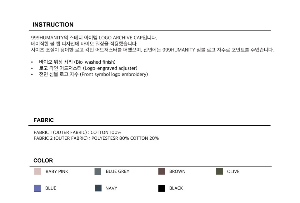 999휴머니티(999HUMANITY)는 불완전함과 완전함의 경계에서 끊임없이 순환하다가 어떤 누군가와의 접점을 통해 새로운 것을 받아들이는 매개체입니다. 999는 접점의 무수한 연결을 의미하며, 다양성을 바탕으로 우리가 경험해온 의복의 선순환을 지향하며 만들어갑니다.