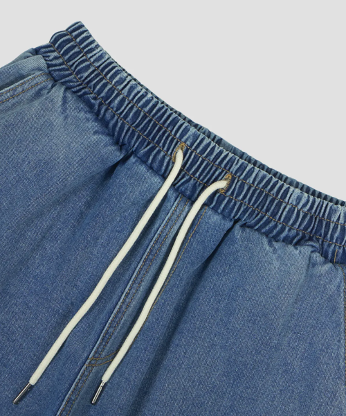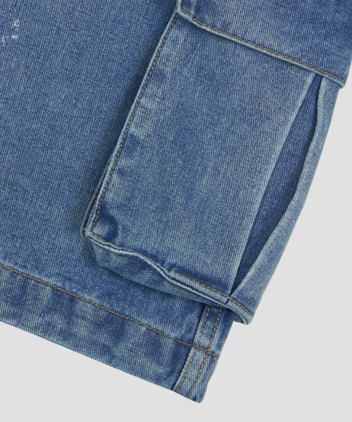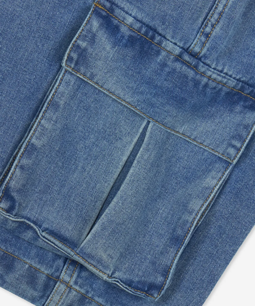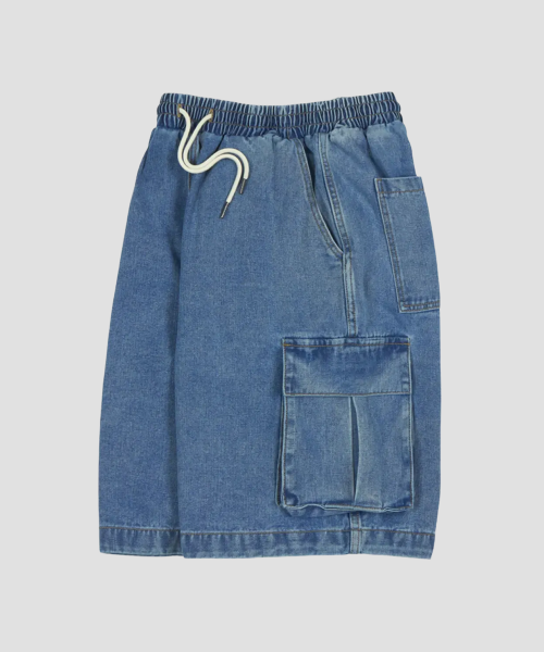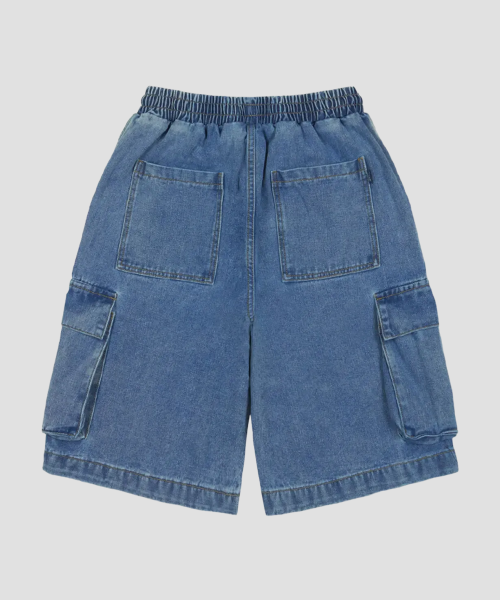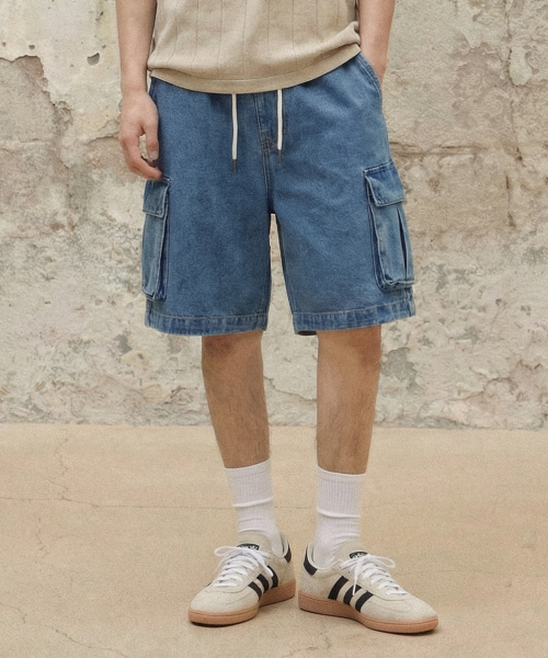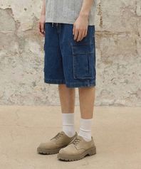 버뮤다 와이드 원턱 카고 데님 쇼츠 [미디엄블루]