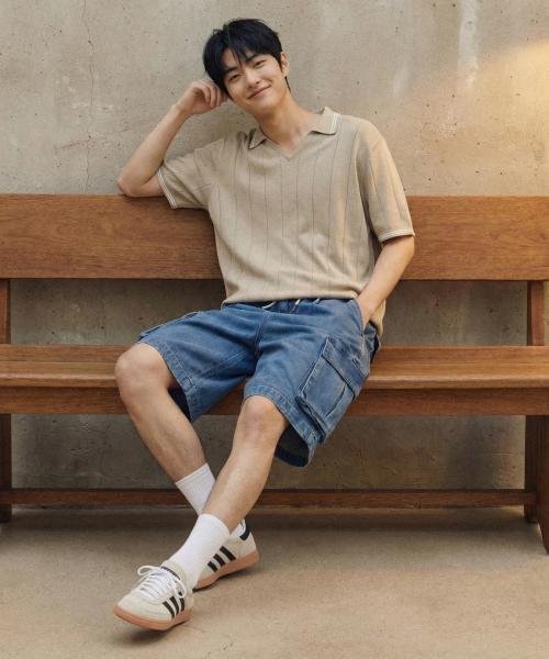 버뮤다 와이드 원턱 카고 데님 쇼츠 [인디고]