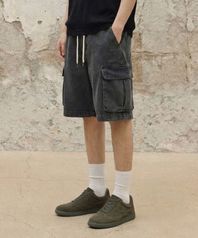 버뮤다 와이드 원턱 카고 데님 쇼츠 [그레이]