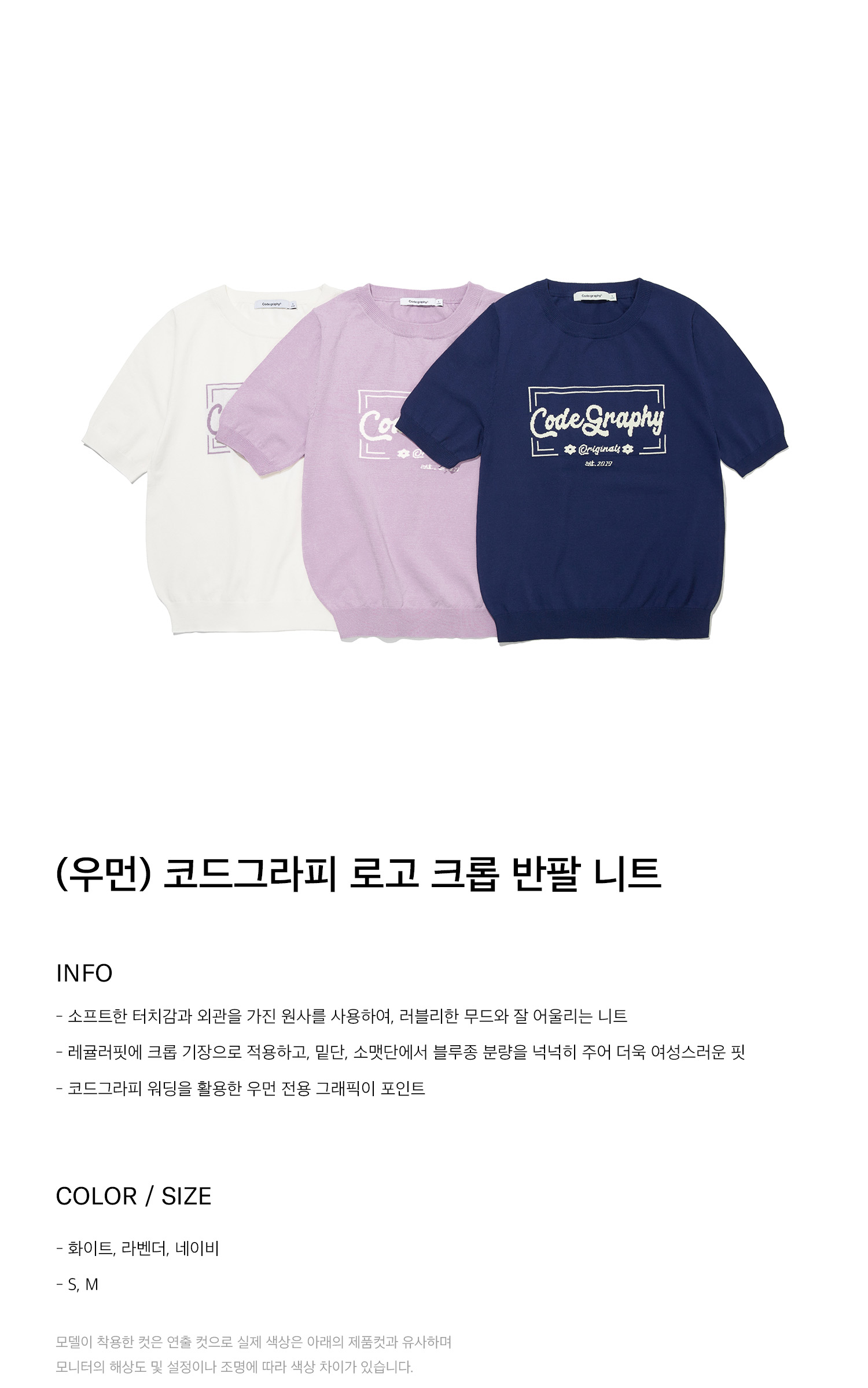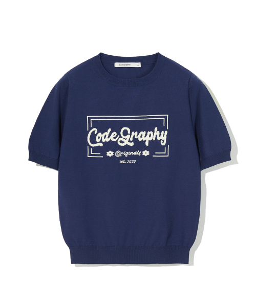 (우먼) 코드그라피 로고 크롭 반팔 니트_네이비