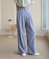 투핀턱 포인트 롱 와이드 슬랙스