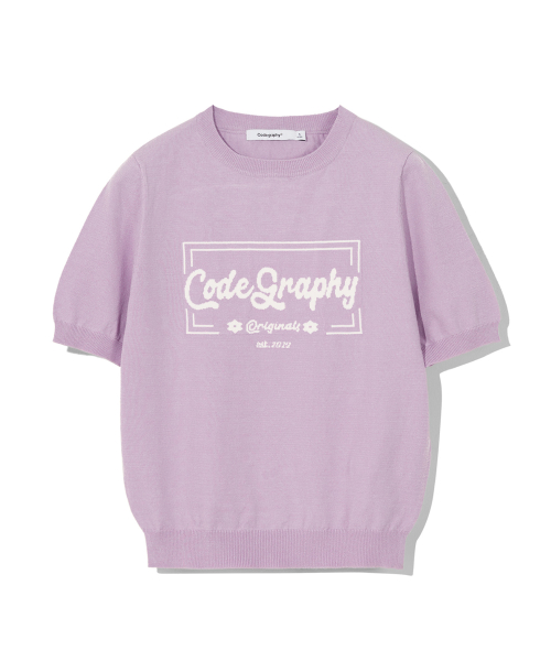 (우먼) 코드그라피 로고 크롭 반팔 니트_라벤더